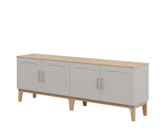 Изящные ножки из массива дерева придают композиции воздушность и визуально расширяют пространство, наполняя его светом. Инновационное матовое покрытие фасадов – это тактильное наслаждение, мягкая бархатистая поверхность, которая словно приглашает прикоснуться. Стеклянные витрины добавляют лёгкость и глубину, создавая эффект простора и ощущение порядка.